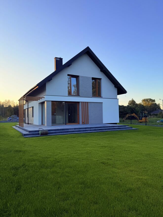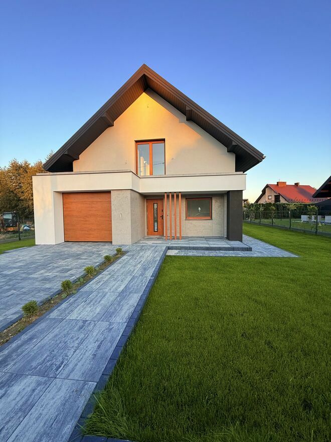 • Nowoczesna, elegancka bryła – dom prezentuje się znakomicie zarówno w dzień, jak i wieczorem.